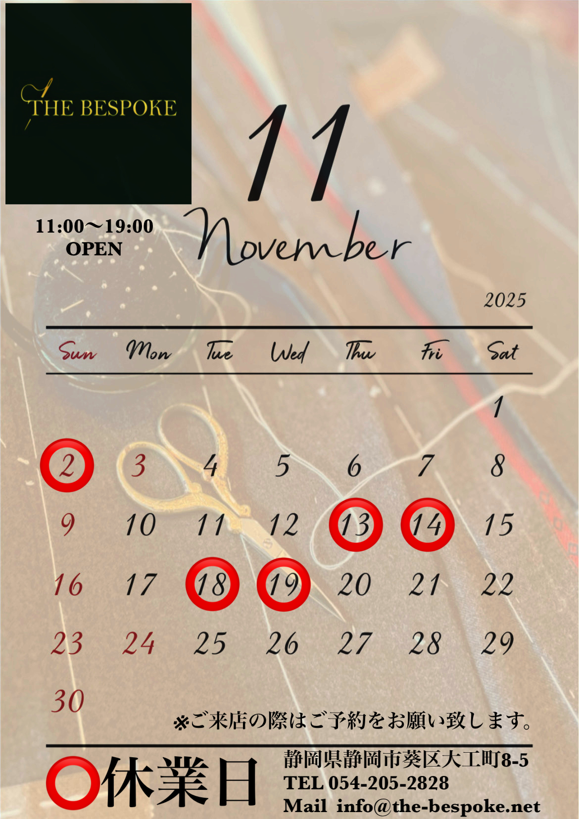 【11月 営業カレンダー】
