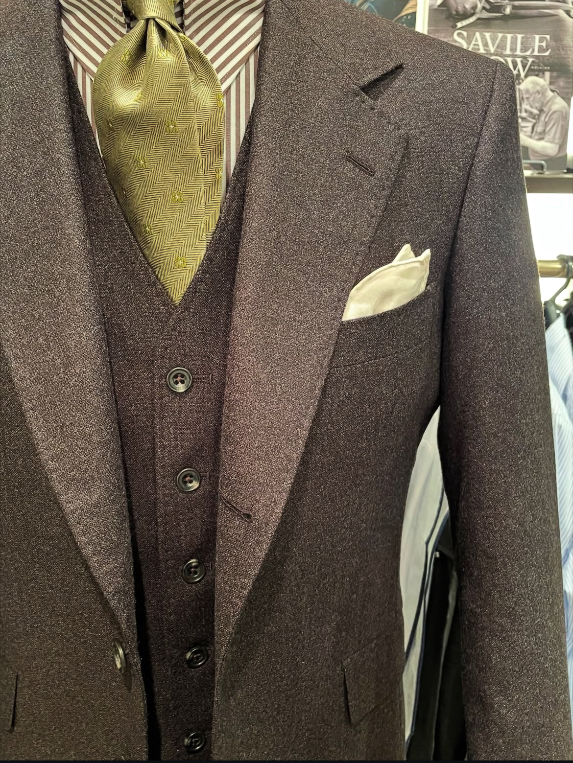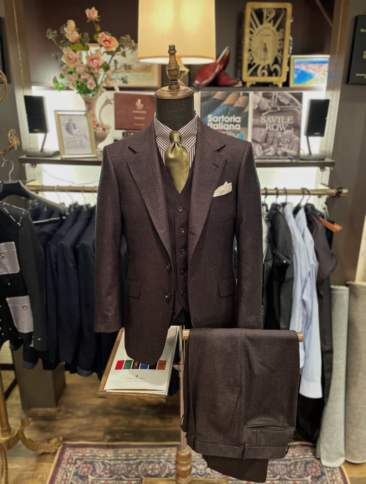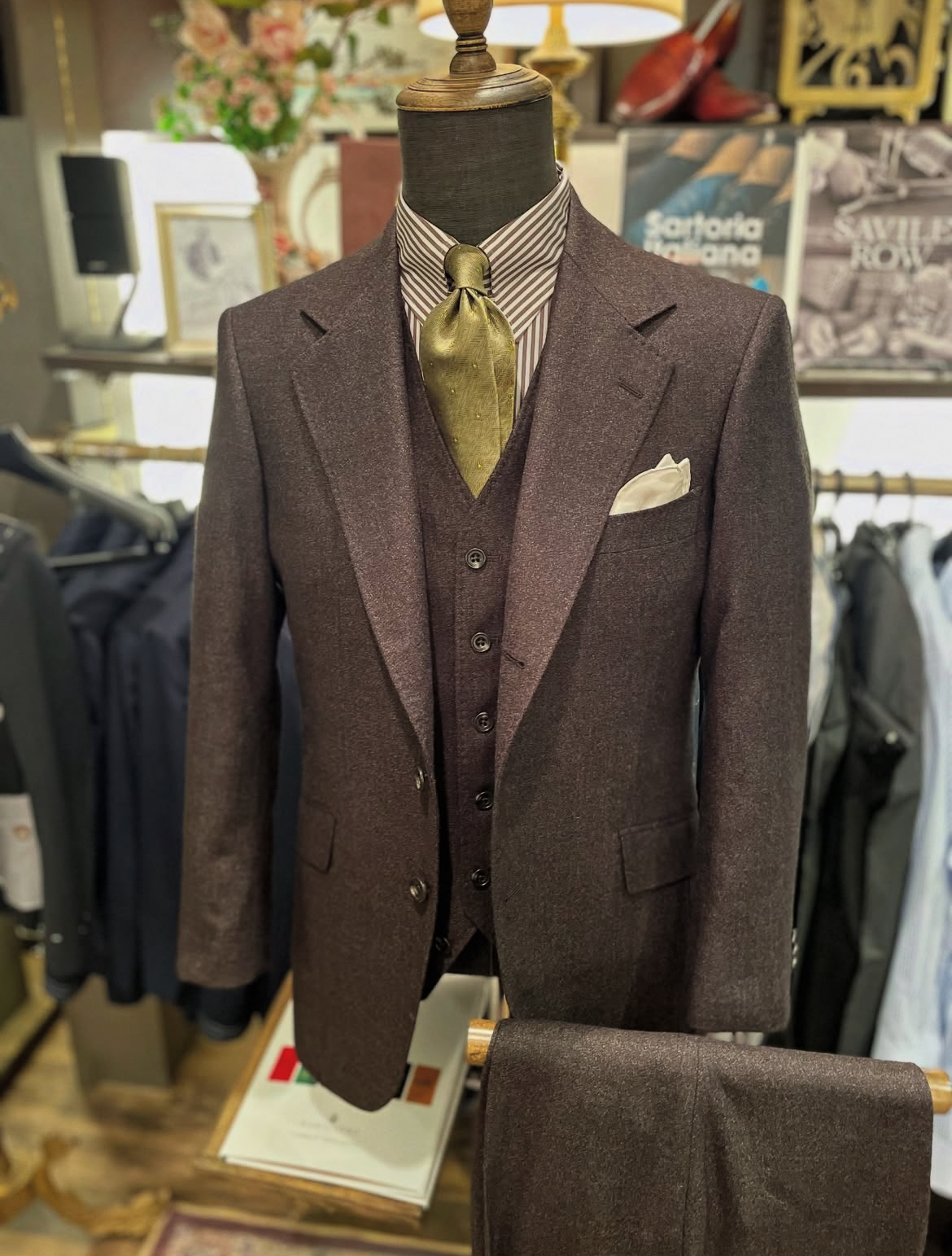 KAYE & STEWART社のヴィンテージファブリックを使用し、スリーピーススーツをお仕立て。